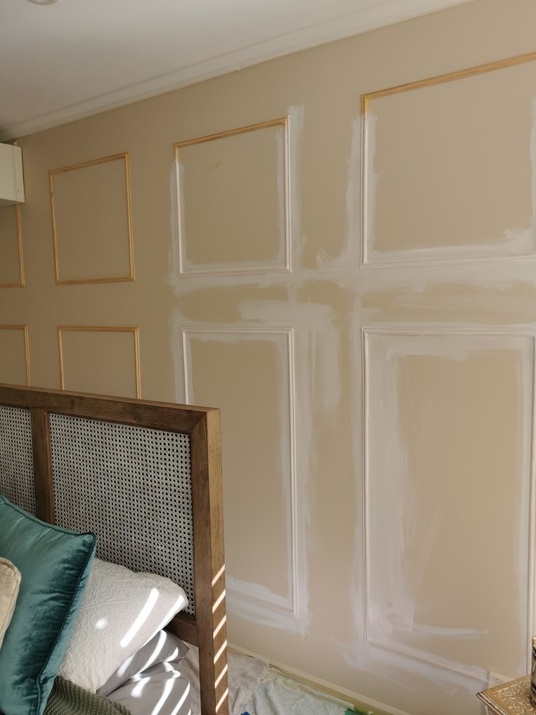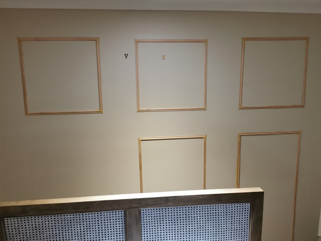 After that it’s easy street. Wait for the glue to dry, neaten the joins between each piece of moulding with wood filler. Once you’ve done that, all that’s left to do is to prime your completed boxes then paint your feature wall the colour of your choice, I usually give it 2 coats.